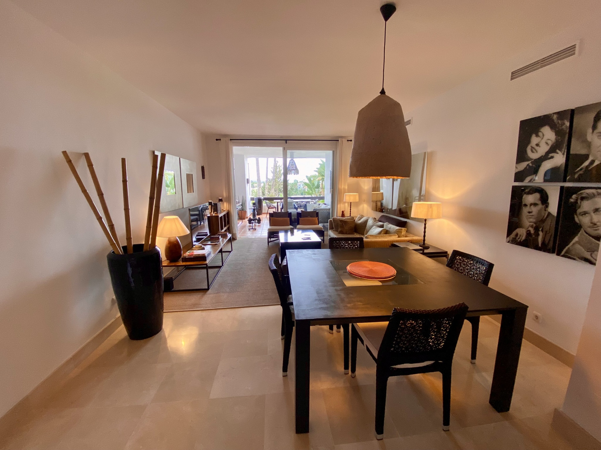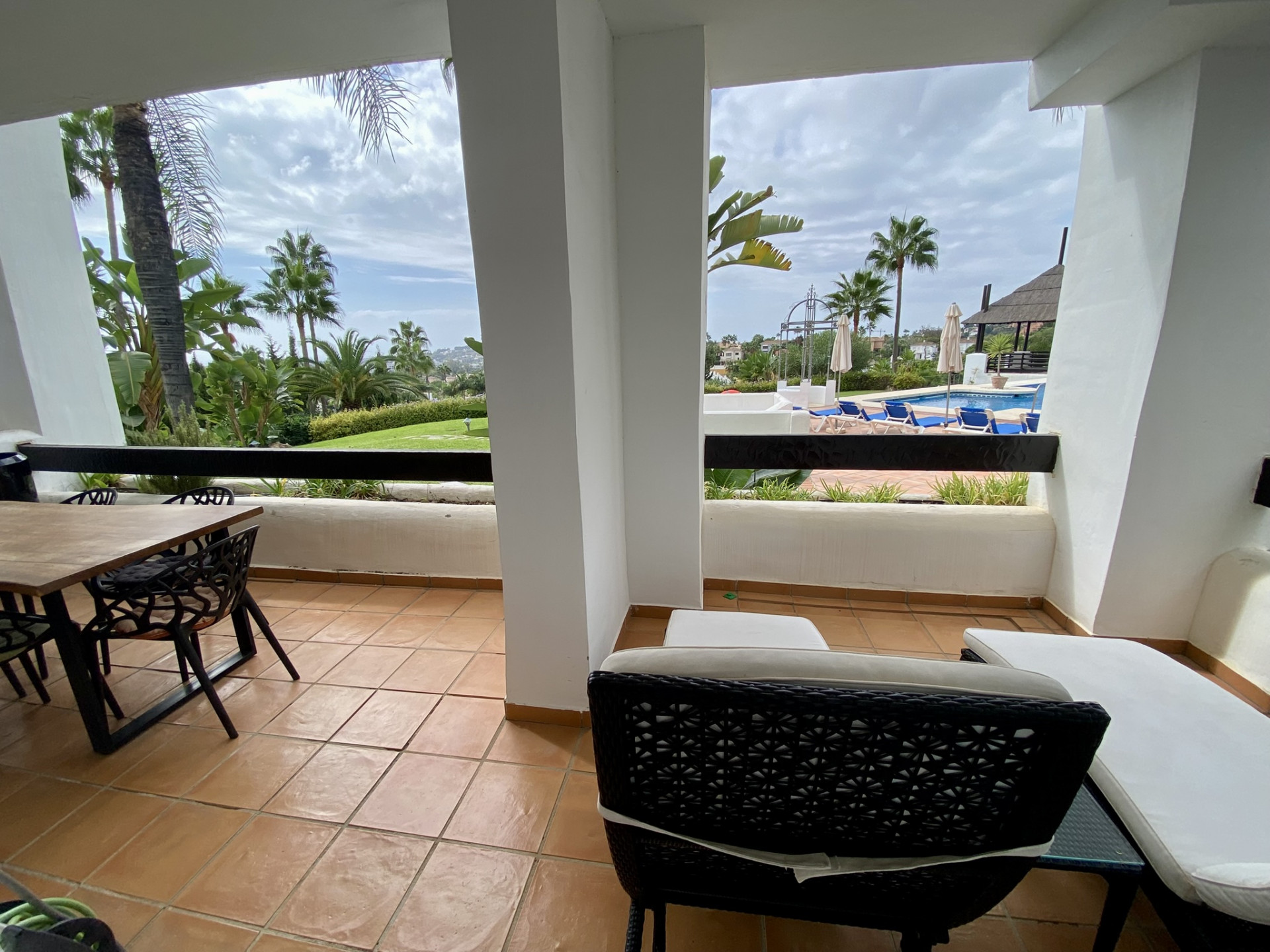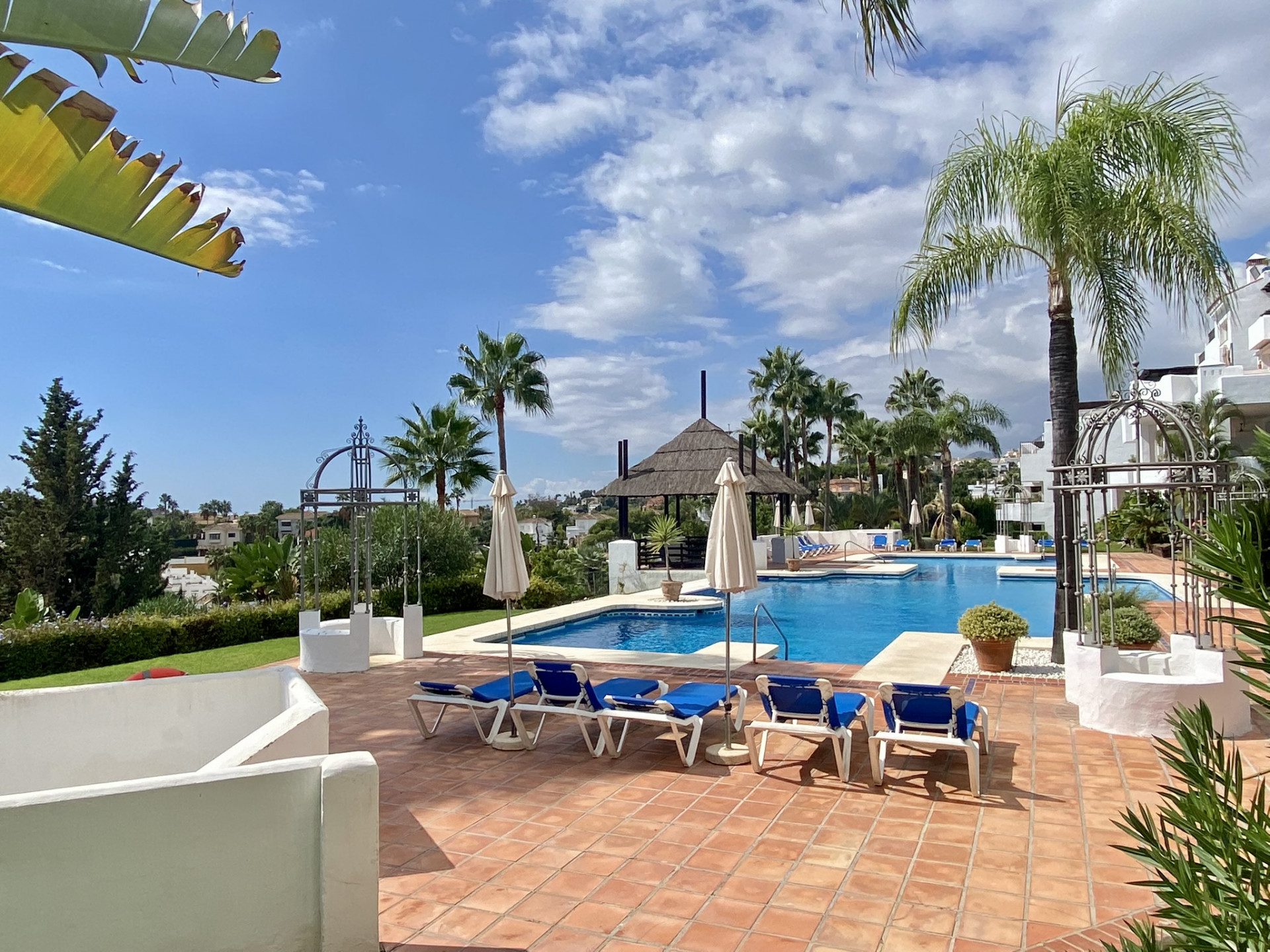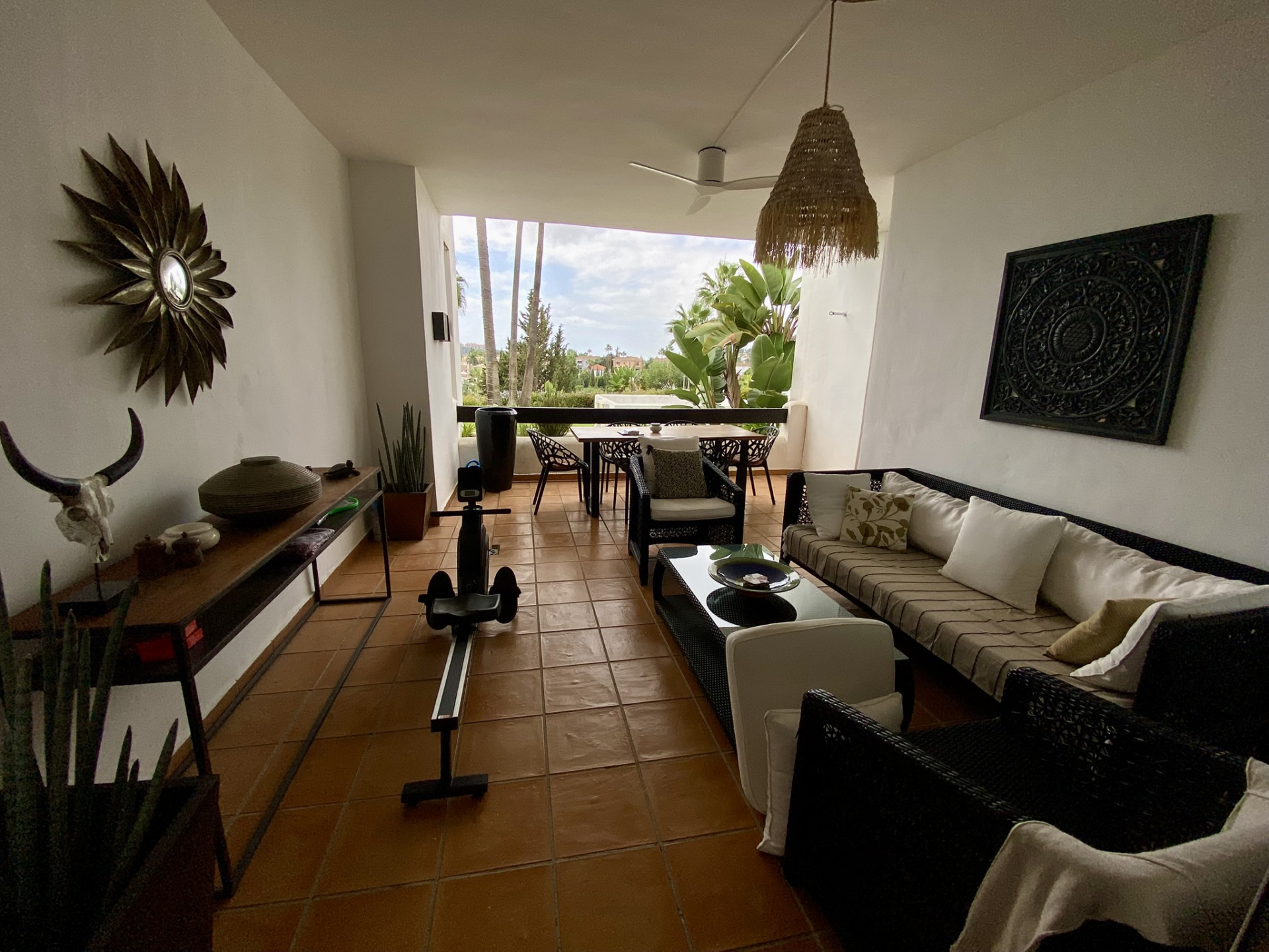€650000 – Large two-bedroom apartment situated in the gated community of Las Tortugas located in the Golf Valley, only a short drive away from Puerto Banus and within 5 minutes’ drive of various golf courses, restaurants and supermarkets. Refurbished in 2020 with a spectacular new fully fitted Gaggenau kitchen this elevated ground floor apartment is offered in perfect condition, ready to move in. The apartment comprises of 2 bedrooms, 1 en-suite bathroom for the master bedroom with access to the covered terrace, 1 separate bathroom with a new walk-in shower, spacious living room with open plan kitchen and a big terrace with views to the garden, and the swimming pool.